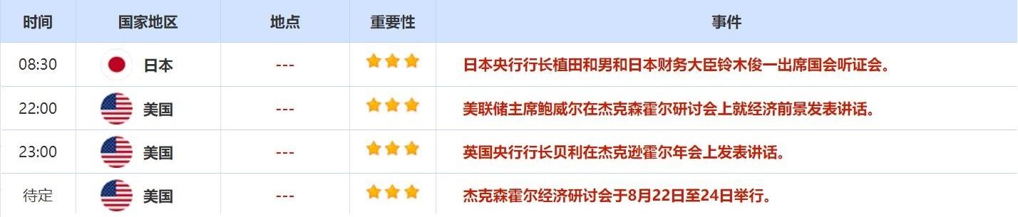 汇通财经APP讯——以下是周五 ( 8月23 日)财经早餐,包括基本面重要消息、贵金属/原油/外汇/商品/股市/债市等行情、国际要闻、国内要闻、机构观点、今日财经重要数据及财经大事。截至8月17日当周,初请失业金人数增加了4000人,升至23.2万人,市场预期为23万人。美国7月成屋销售五个月来首次增长。美国最新经济数据喜忧参半,美联储官员称降息步伐将是渐进的。周五美联储主席鲍威尔在杰克森霍尔研讨会上就经济前景发表讲话,市场回撤对大幅降息的押注,美指、美债收益率携手反弹,黄金大跌逾1%。