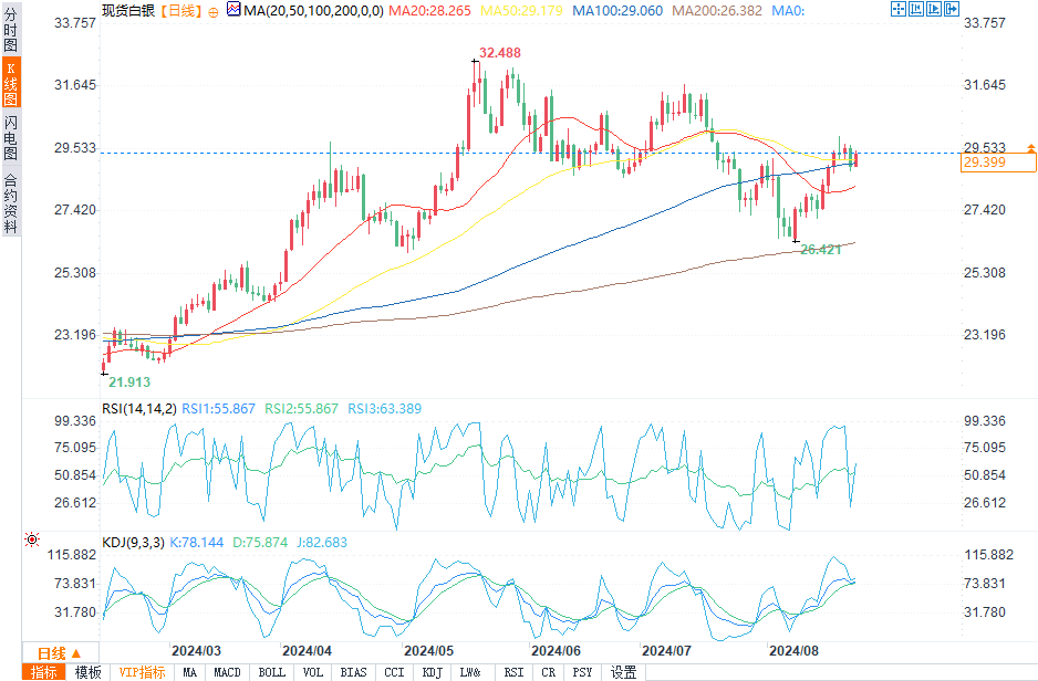 市场参与者将密切关注鲍威尔在杰克逊霍尔研讨会上的讲话,以了解未来的利率决定。交易员认为,9月份降息25个基点的可能性为76%,一些人猜测可能会更大幅度地降息50个基点。这种预期维持了白银的吸引力,因为较低的利率通常会支撑非收益资产。