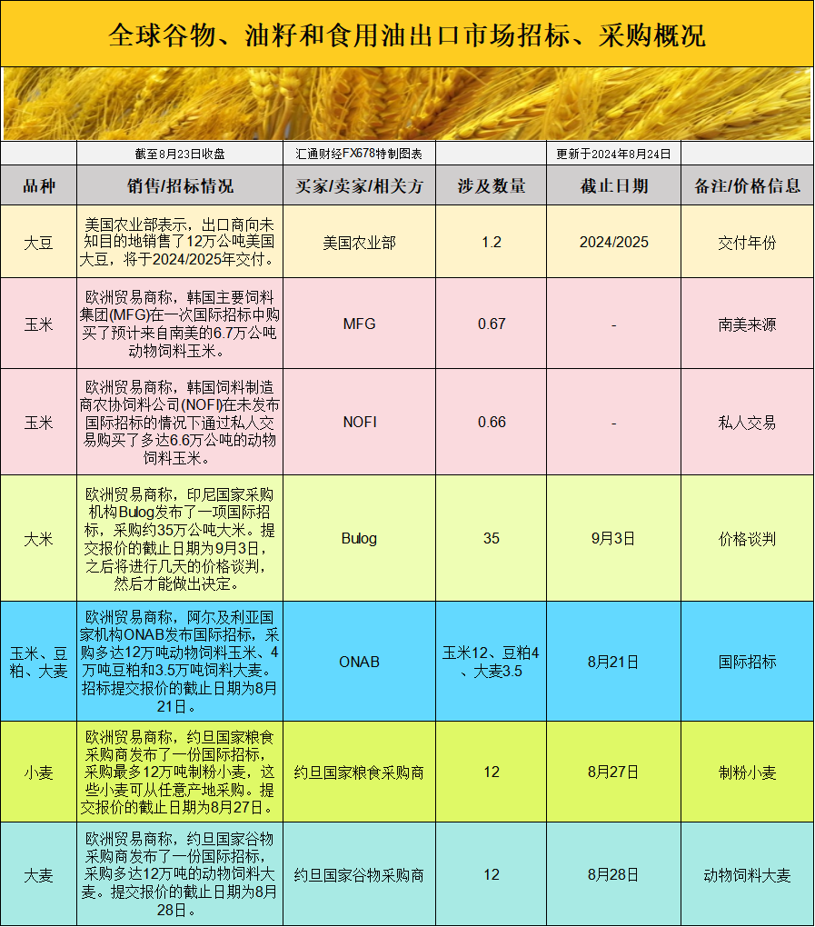 汇通财经APP讯——本文对大豆、豆粕、豆油、小麦和玉米等CBOT主要农产品期货市场的最新行情进行了深入分析,重点关注了国际市场招标变动和基差反应的影响。文章详细解读了各品种的最新报价、市场动态、供需情况,以及相关的机构分析师观点,提供了对未来市场走势的专业见解。