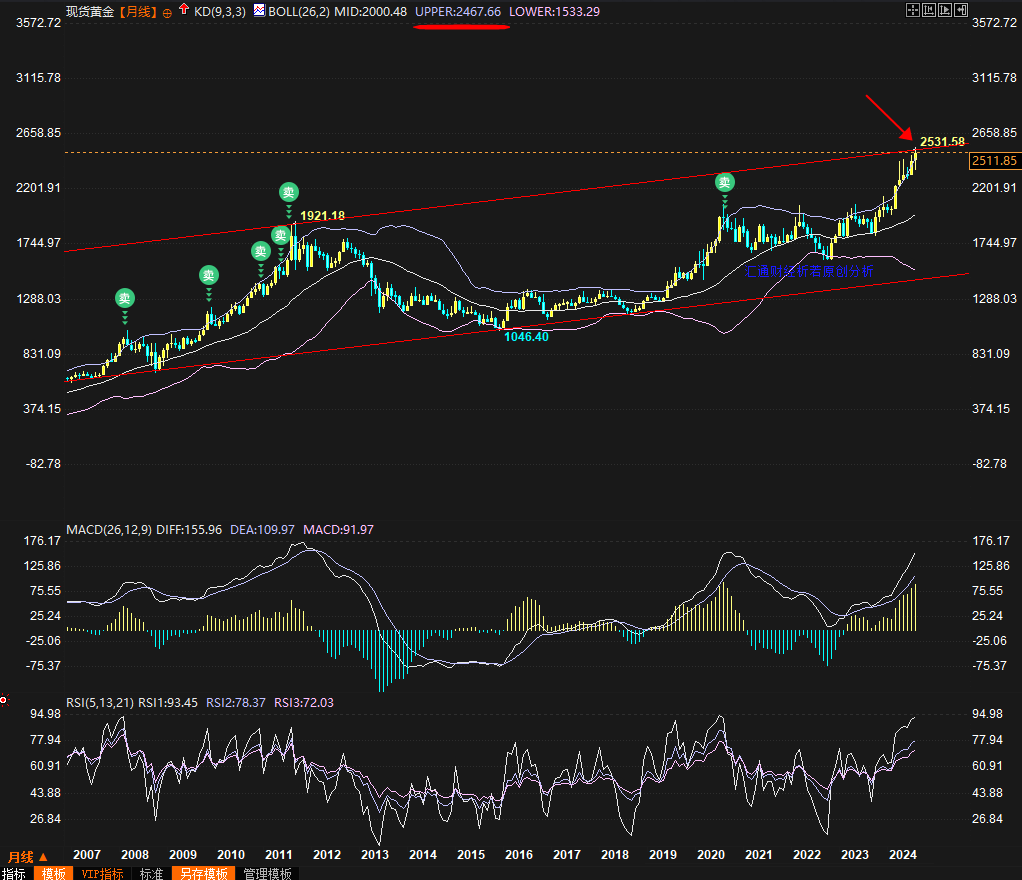 现货黄金月线技术分析,来源:汇通财经旗下易汇通)