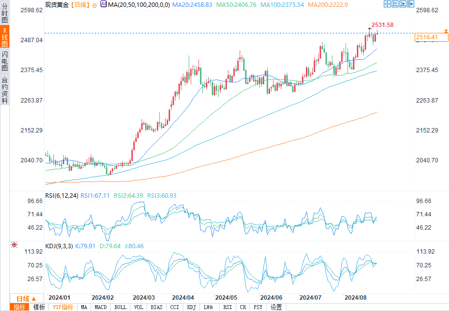 现货黄金报2517.47美元/盎司,涨幅0.22%。