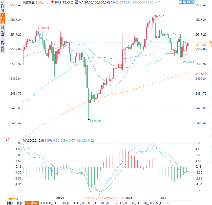 周二(8月27日),全球市场情绪普遍趋于谨慎,主要股指和大宗商品价格波动有限,投资者的焦点主要集中在即将到来的美联储降息预期以及持续发酵的地缘政治紧张局势。国际黄金价格继续徘徊在2500美元以上的关键心理关口附近,