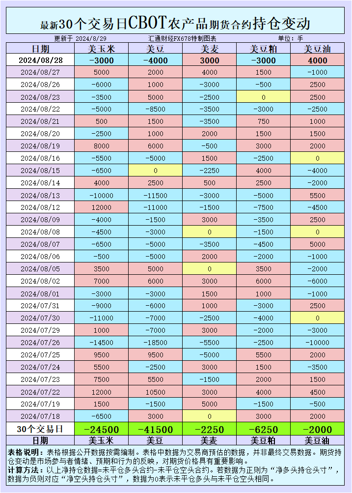基金持仓方面,数据显示大宗商品基金正在加大大豆期货的净空头仓位。8月28日的最新持仓数据显示,基金增加了CBOT大豆的投机性净空头。这一持仓变化表明市场中有一部分投资者预期未来大豆价格将继续承压,可能与气候因素和供应压力相关。