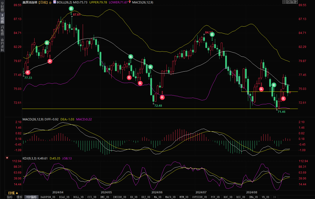 美原油目前交投于74.60美元/桶。油价周三收低1%,此前美国原油库存降幅小于预期以及对亚洲大国需求的担忧持续存在,但中东和利比亚的供应风险限制了油价的跌幅。