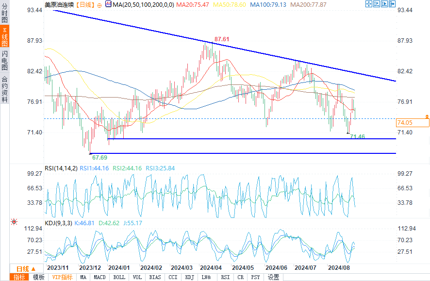 市场预测:由于需求担忧,前景看跌考虑到疲软的需求信号、经济的不确定性,以及只有轻微的供应中断,原油价格的短期前景似乎是悲观的。除非地缘政治紧张局势显著升级,或出现意外的供应中断,否则油价可能仍将承压。交易者应密切关注即将发布的经济数据和库存报告,因为这些将是决定未来几天市场走向的关键因素。