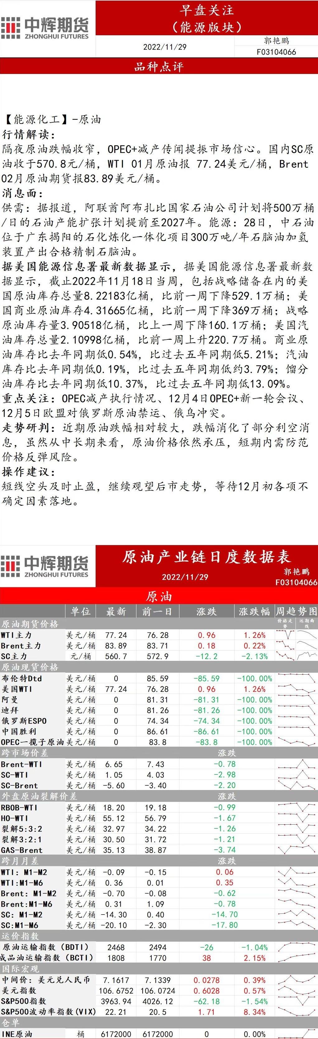 标题:中辉期货能源早盘关注:短线空头及时止盈,继续观望后市走势