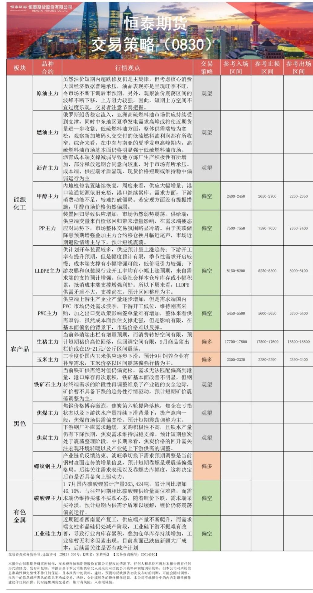 标题:【恒泰早报】8月30日恒泰期货交易策略