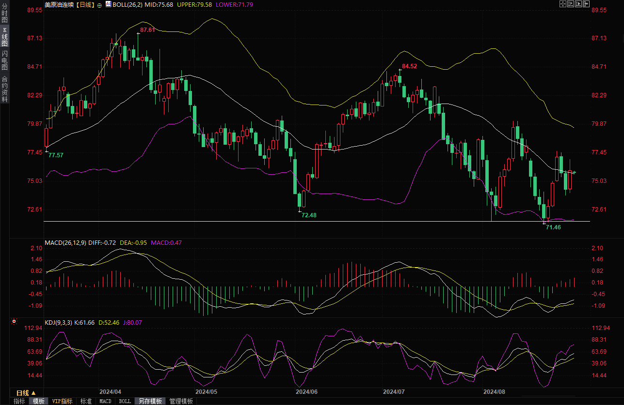 布伦特原油期货10月期货上涨1.29美元,或1.6%,报收于每桶79.94美元。美国原油期货 上涨1.39美元,或1.9%,报每桶75.91美元。