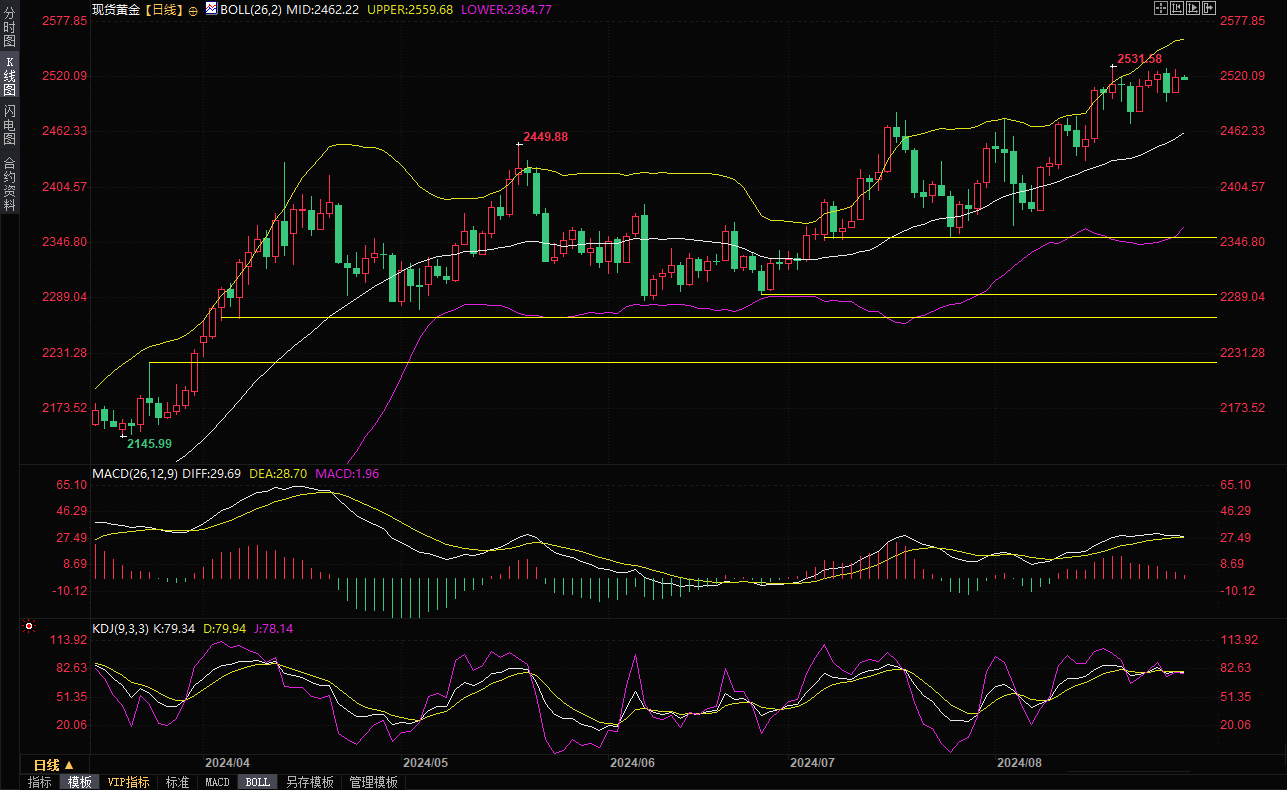 现货黄金现报 2518.61美元/盎司。
