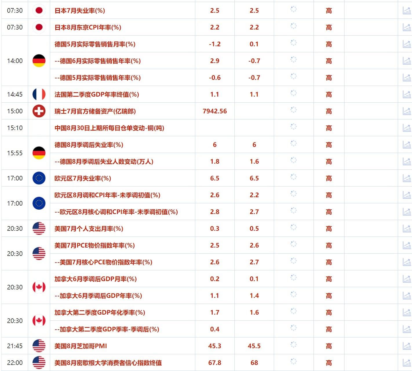 汇通财经APP讯——以下是周五 (8月30日)财经早餐,包括基本面重要消息、贵金属/原油/外汇/商品/股市/债市等行情、国际要闻、国内要闻、机构观点、今日财经重要数据及财经大事。美国劳工部周四表示,截至8月24日当周,初请失业金人数下降了2000人,经季节调整后为23.1万人,市场预期为23.2万人。美国初请数据略低于预期,