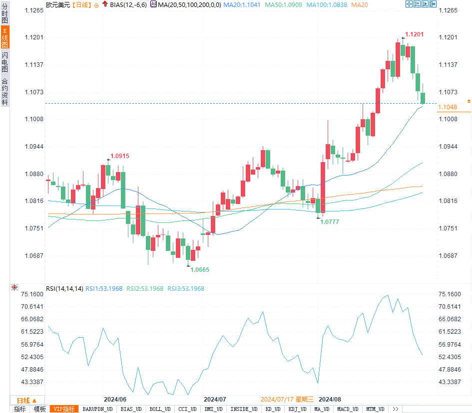 欧元兑美元下跌0.2%,收于1.1050美元,累计下跌1.3%,有望创下4月以来的最大单周跌幅。尽管8月欧元上涨2.1%,创下2023年11月以来的最佳月度表现,但欧洲央行的降息预期仍对欧元产生压力。