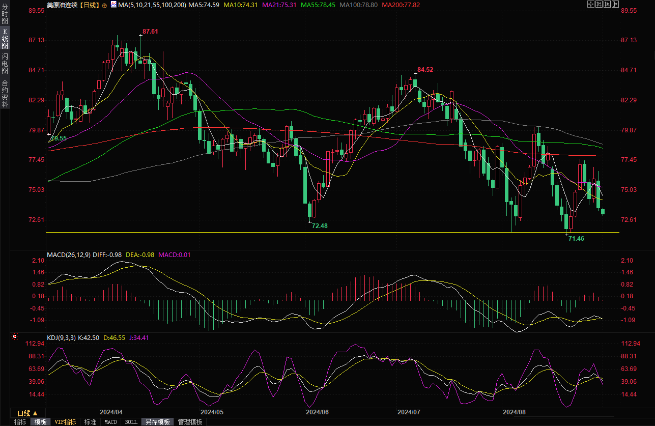 美原油一点刷新逾一周低点至72.96美元/桶。油价上周五大跌逾3%,回吐了上周四的全部涨幅,投资者评估OPEC+供应将从10月开始增加的预期,以及美国数据显示消费者支出强劲后9月大幅降息的希望减弱。