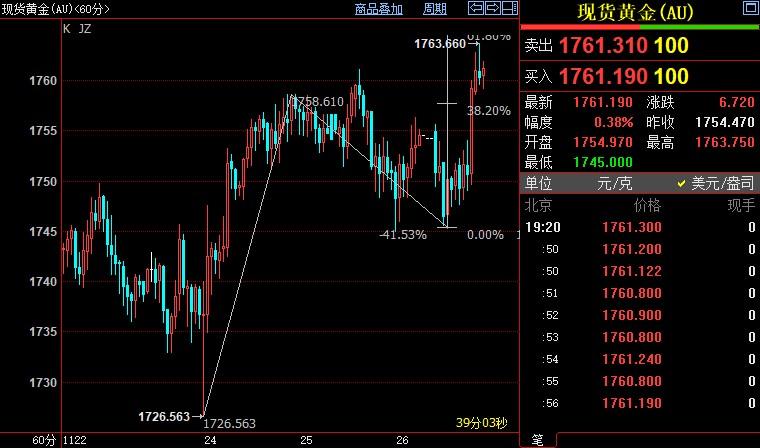 现货黄金上涨0.27%至1757.78美元/盎司;COMEX期金主力合约上涨0.20%至1757.5美元/盎司;