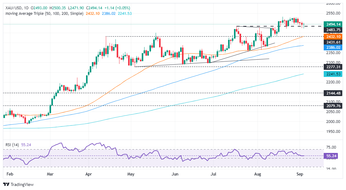FXStreet分析师Christian Borjon Valencia指出,金价周三在触及日低点2471美元/盎司后出现反弹。在美国公布的弱于预期的职位空缺数据增加美联储降息50个基点的可能性之后,黄金价格在北美市场走高。美国国债收益率下跌和美元走软支撑黄金。