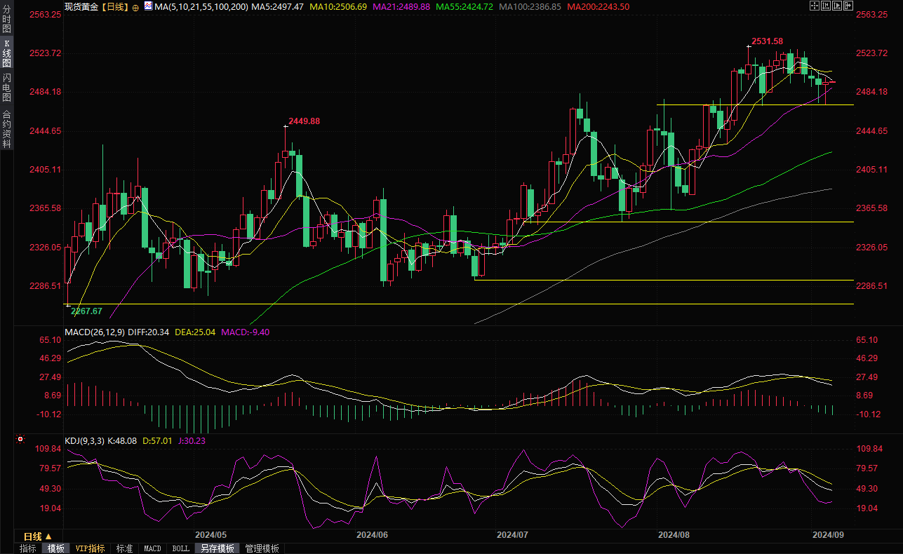 上方留意2500关口和10日均线2506.64附近阻力,若意外顶破10日均线,则增加短线看涨信号。