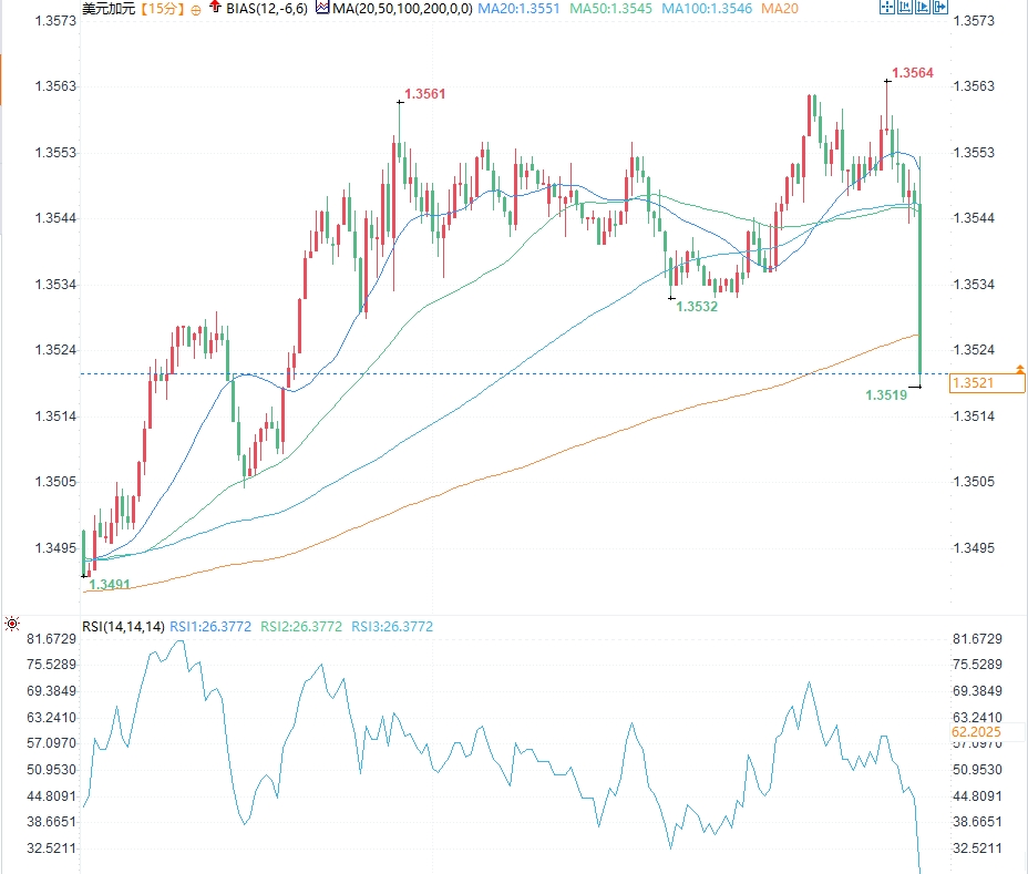 美元兑加元短线走低,现报1.3541。这一走势表明,尽管央行选择了降息,但市场对加拿大经济前景的解读并非单一的利空。加元的上涨部分归因于市场对未来进一步降息预期的降低,以及对加拿大经济韧性的信心。
