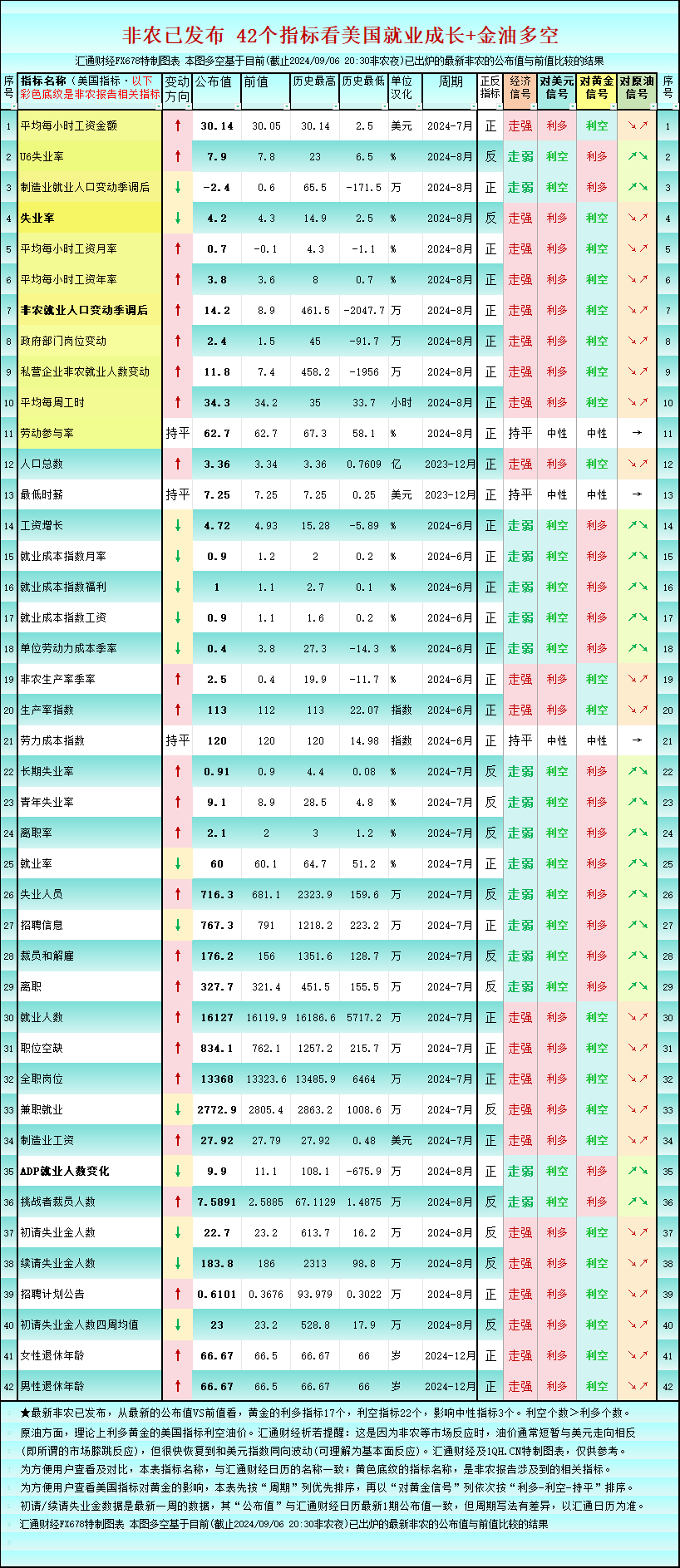 标题:一张图:非农后美国就业42个指标,利多黄金的仅17个
