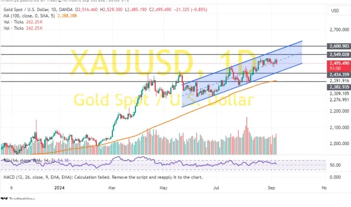 周一(9月9日)亚市早盘,现货黄金在上周五大跌后继续承压,金价目前位于2497美元/盎司附近。知名财经网站FXDailyReport分析师Nicholas Kitonyi撰文,对黄金后市走势进行分析。