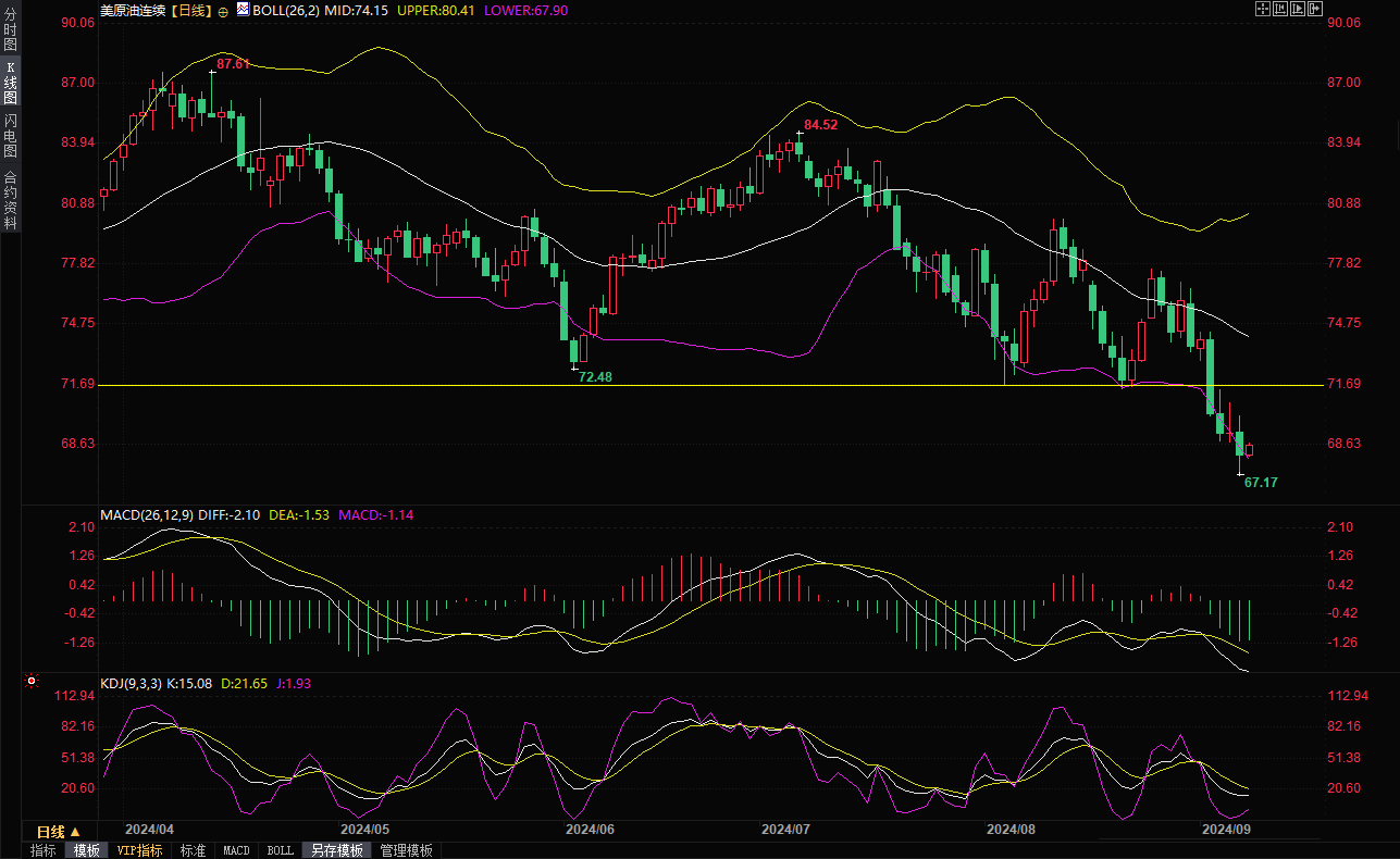 布伦特原油期货上周五下跌1.63美元,或2.24%,至每桶71.06美元,为2021年12月以来的最低水平。美国原油期货上周五下跌1.48美元,或2.14%,至67.67美元,为2023年6月以来最低水平。