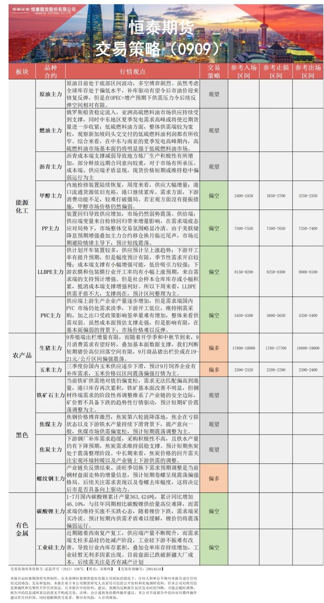 标题:【恒泰早报】9月9日恒泰期货交易策略