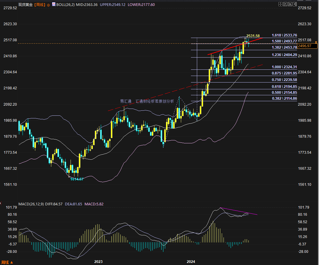 现货黄金周图技术分析,来源:汇通财经旗下易汇通)