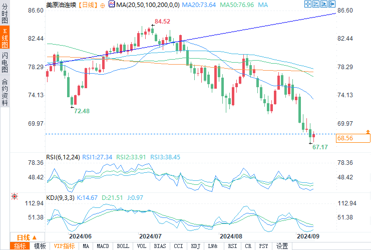 纽约商品交易所10月交割的西得州中质原油(WTI)期货价格收涨 1.04 美元,涨幅超过 1.53%,收于 68.71 美元/桶。截至发稿,现报 68.56 美元/桶。