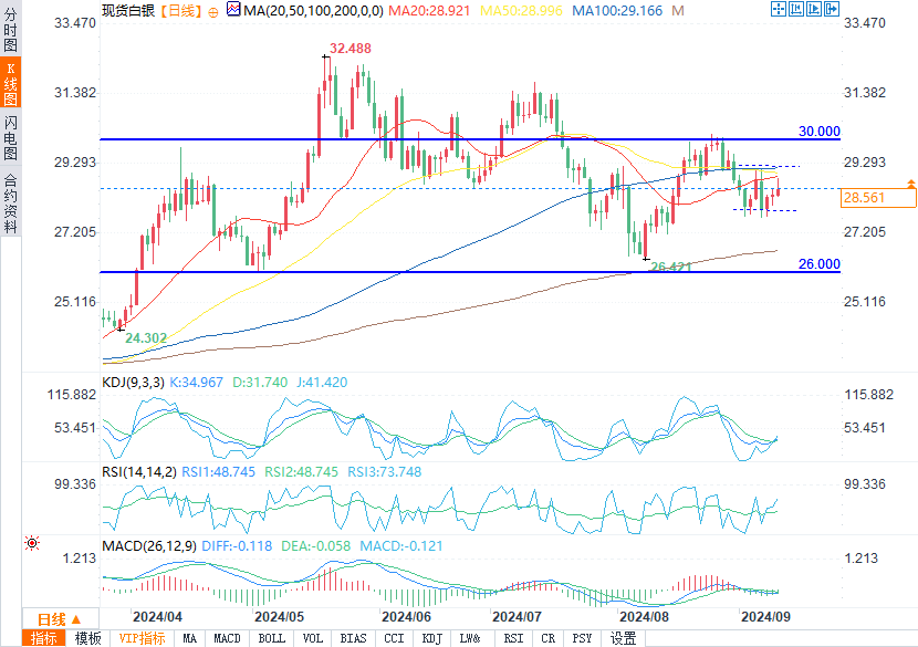 标题:银价接近50日移动均线,突破还是继续盘整?