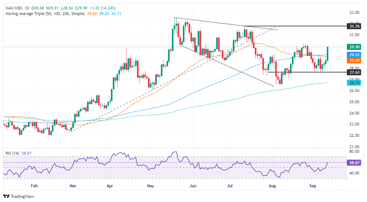 周四(9月12日),受美元走软推动,现货白银暴涨逾4%。FXStreet分析师Christian Borjon Valencia最新撰文,对银价技术走势进行分析。