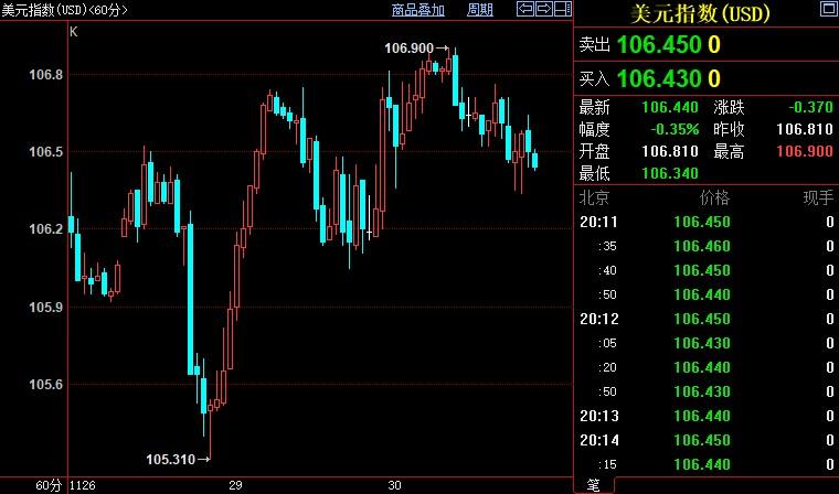 美元指数在美联储主席鲍威尔发表讲话前走低。投资者希望从鲍威尔讲话中了解美联储未来货币政策路径。尽管美联储将放缓加息步伐,但鲍威尔料重申,抗通胀不力带来的后果远比过度加息的风险严重得多。