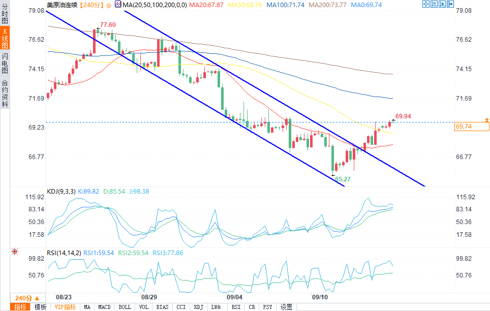 预计今天交易区间在68.20美元的支撑位和71.20美元的阻力位之间。