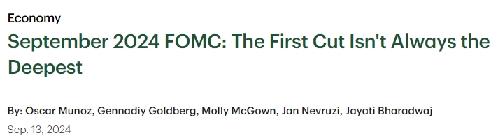 “正如我们之前所指出的,我们的观点面临的主要风险是,美联储领导层发现自己需要比我们目前预期的更早地恢复中立立场,因为双方的职责都已恢复或即将达到稳定状态。即使FOMC决定谨慎启动宽松周期,美联储官员也可以在即将召开的会议上加快降息步伐。9月之后降息50个基点的门槛仍然很低。”