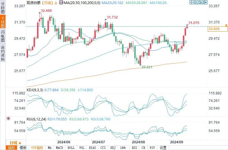 白银预测:市场情绪因美联储降息转为看涨,目标为32.52美元
