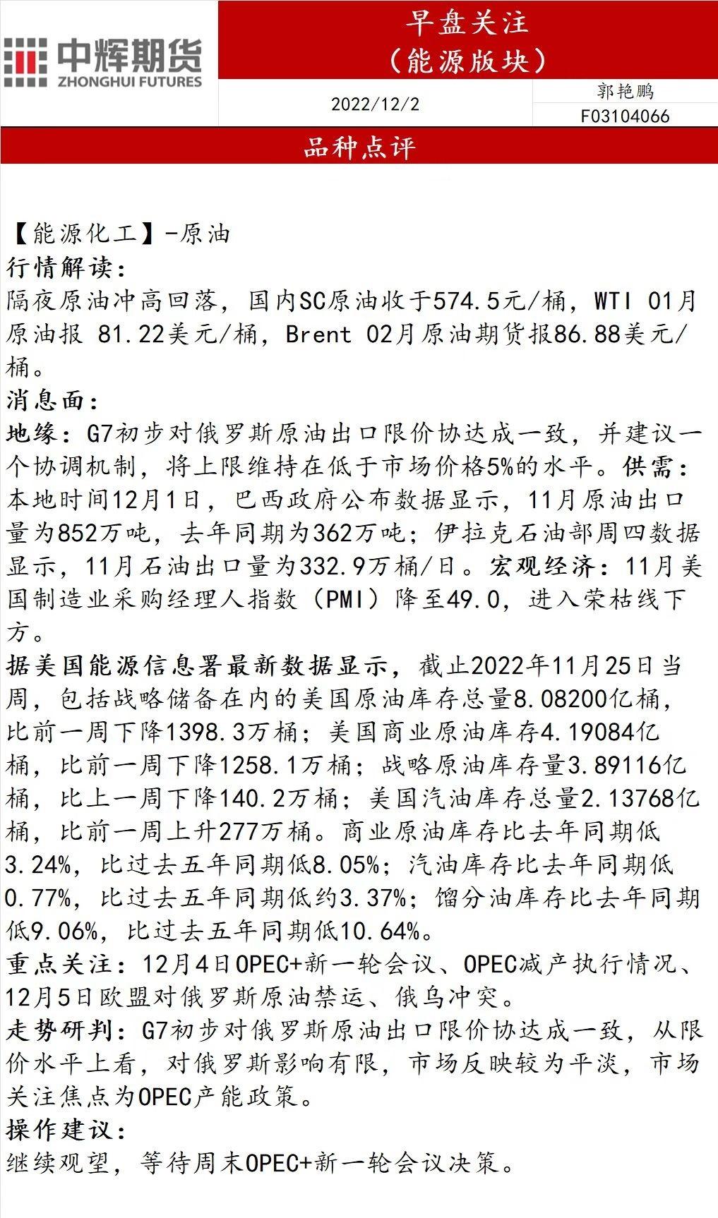 标题:中辉期货能源早盘关注:建议继续观望,等待周末OPEC+新一轮会议决策