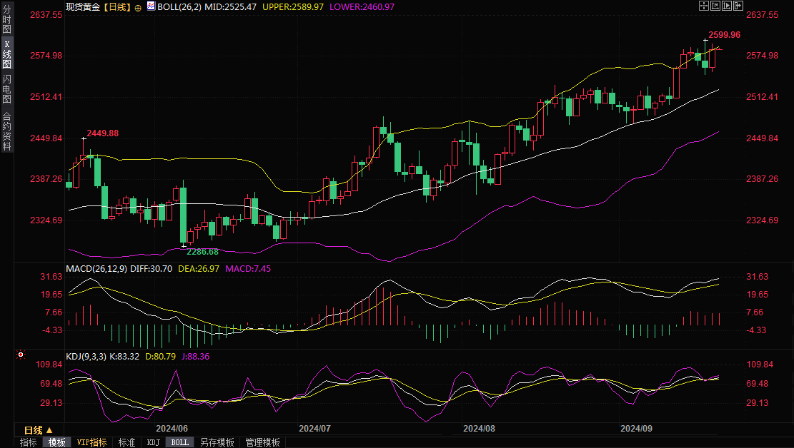 现货黄金周三曾创下2599.96美元的纪录新高,此前美联储将指标政策利率区间下调50个基点至4.75%-5.00%。