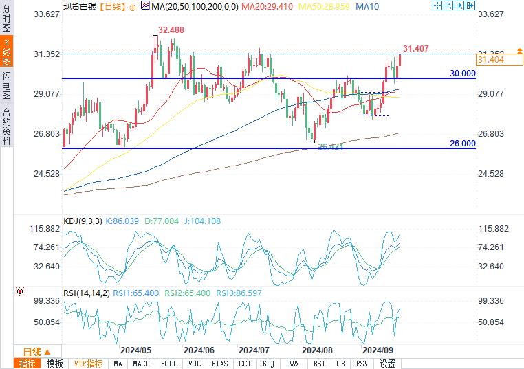 标题:白银预测:美联储降息推动银价测试2024年高点附近