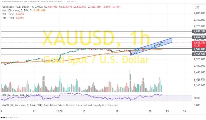 Kitonyi表示,9月20日金价从约2587美元/盎司的关键支撑位反弹至约2620美元/盎司上方。在60分钟的图表中,金价在一个上升通道内交易。