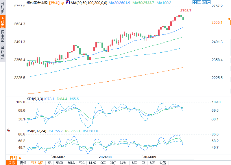 从技术层面看,COMEX 12月黄金多头近期整体技术优势强劲。多头的下一个上行目标是在2,800.00美元的稳固阻力位上方收盘。空头的下一个近期下行目标是将期货价格推至坚实的技术支撑位2,600.00美元以下。第一个阻力位见于隔夜高点2,687.70美元,然后是合约高点2,708.70美元。第一个支撑位见于2,650美元,然后是2,635.00美元。