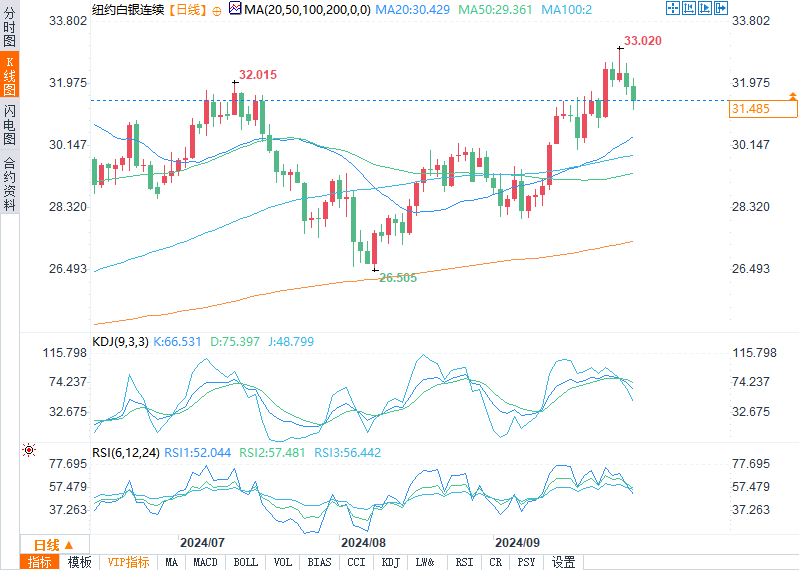 现货白银报31.183美元/盎司,跌幅1.39%。纽约黄金联系报2656.0美元/盎司,跌幅0.45%。纽约白银连续报31.485美元/盎司,跌幅1.04%。
