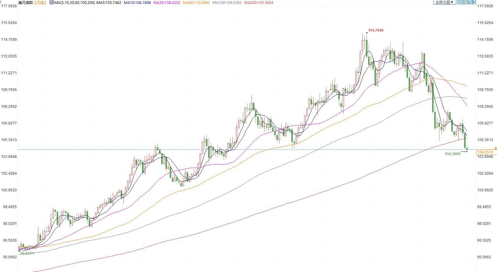 美元指数下跌,主要因市场认为美联储有望放缓加息速度,同时疫情担忧缓和削弱了避险美元的需求。但全球经济衰退的担忧情绪始终限制美元下行。