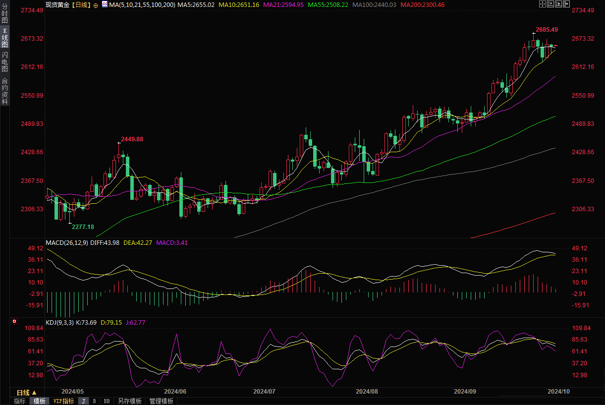 现货黄金窄幅震荡,目前交投于2660.92美元/盎司附近。金价周三震荡微跌,美国9月ADP就业数据(俗称“小非农”)强于市场预期,帮助
