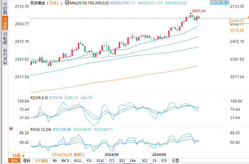现货金在周三美国早盘一度跌至每盎司2,643.81美元的低点附近,随后开始反弹。