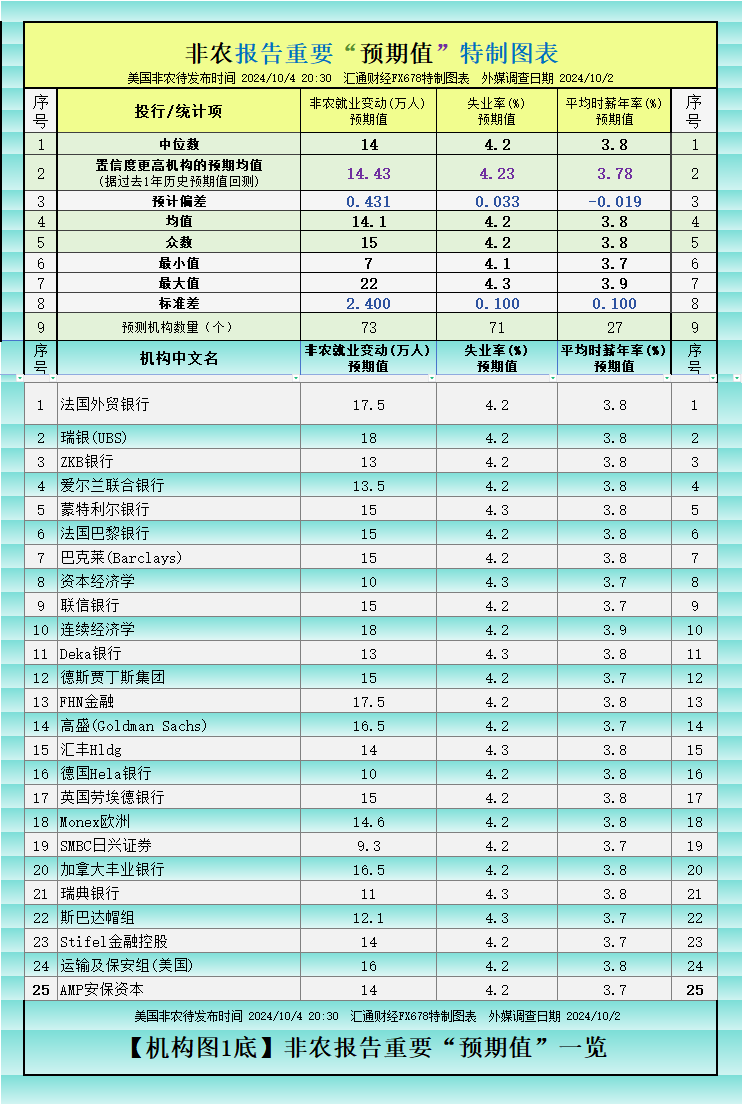 图解非农:预期仅增14万?看全球逾70个投行大咖最全预测
