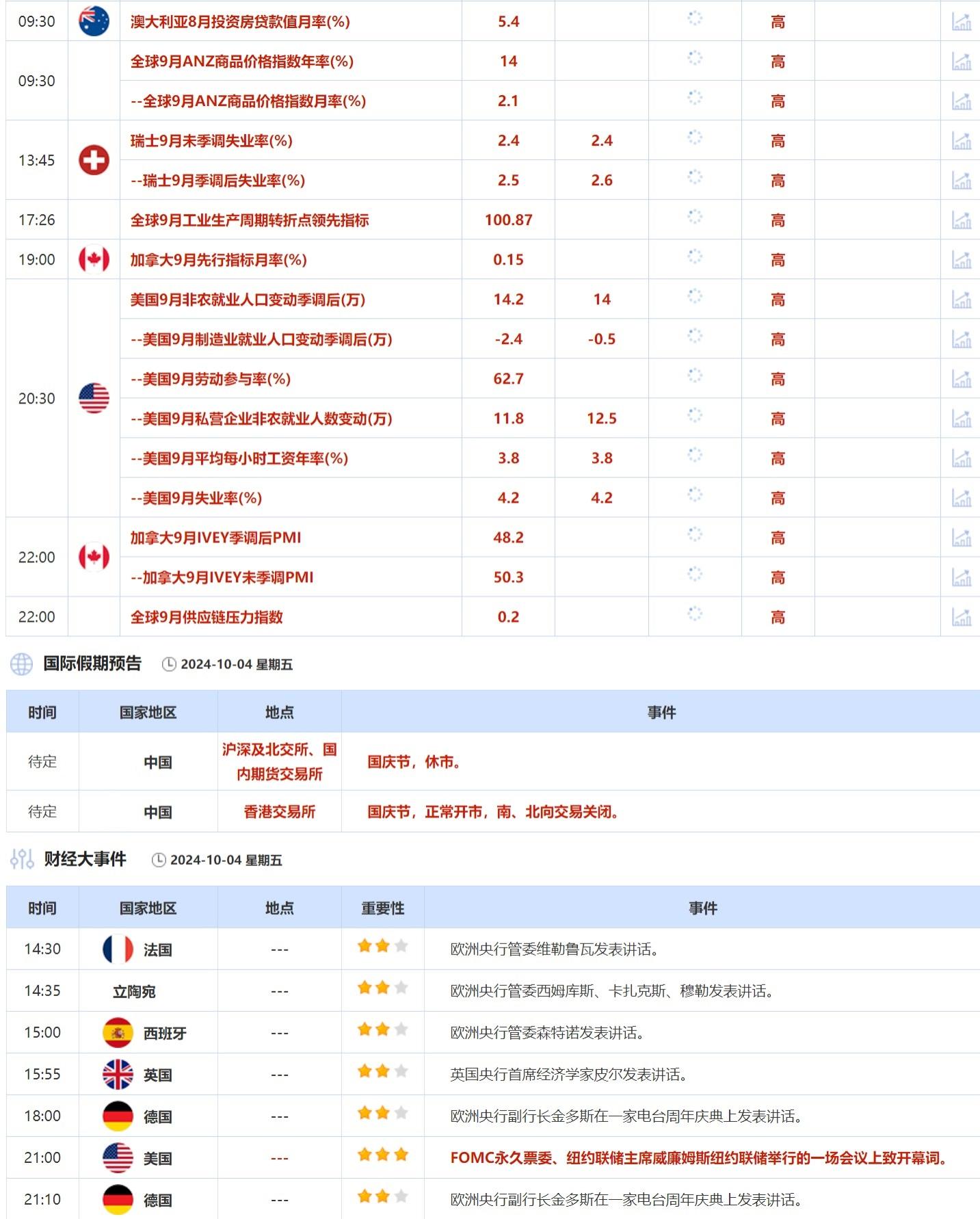 汇通财经APP讯——以下是周四( 10月4日)财经早餐,包括基本面重要消息、贵金属/原油/外汇/商品/股市/债市等行情、国际要闻、国内要闻、机构观点、今日财经重要数据及财经大事。美国上周首次申领失业救济人数小幅上升,反映出现有限裁员,