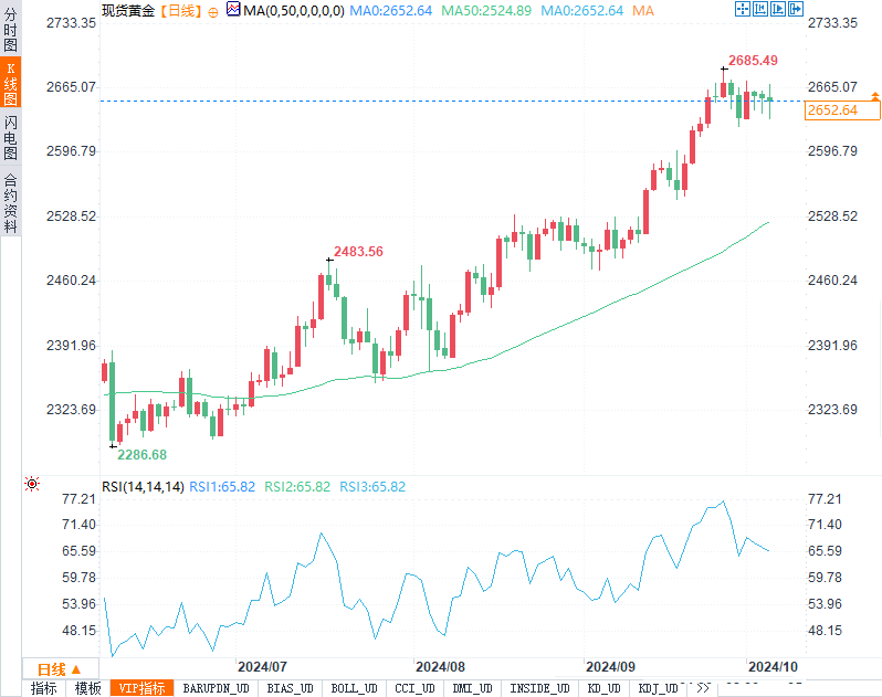 下跌至2651.56美元/盎司,黄金期货收于2667.80美元/盎司。美国9月就业数据意外强劲,新增25.4万个就业岗位,失业率降至4.1%,大幅超过市场预期。这一数据进一步降低了市场对美联储11月会议上大幅降息的预期,导致美元走强,抑制了黄金的避险需求。