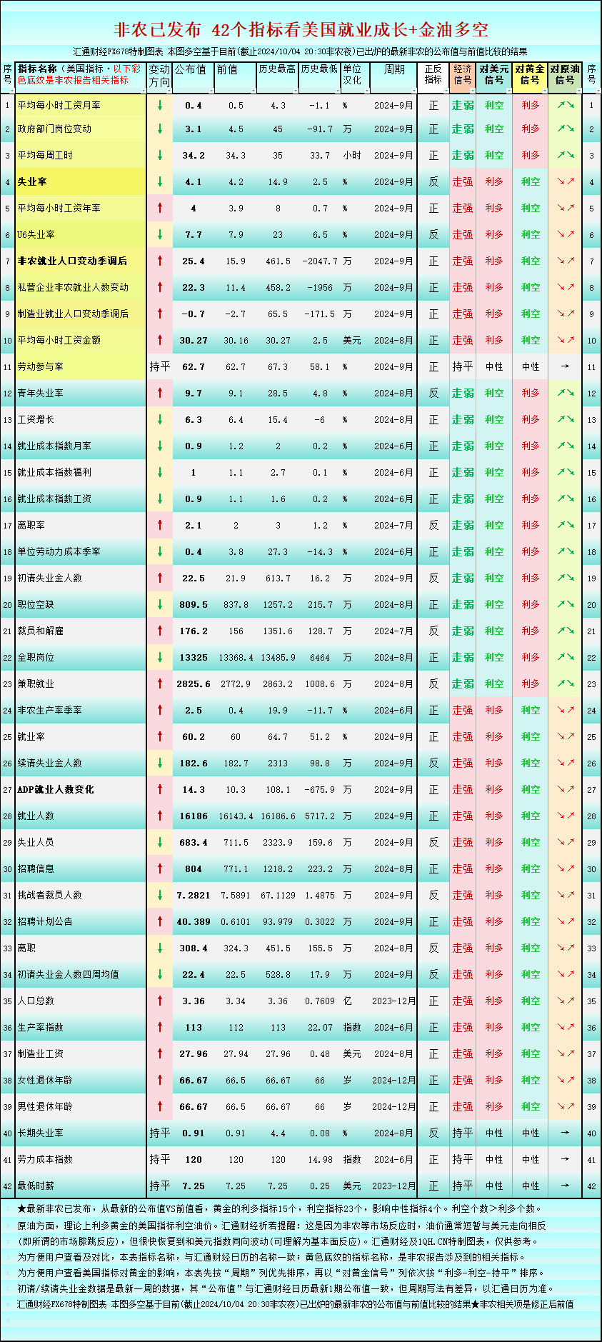 标题:一张图:强劲非农后,42个就业指标利多黄金的15个