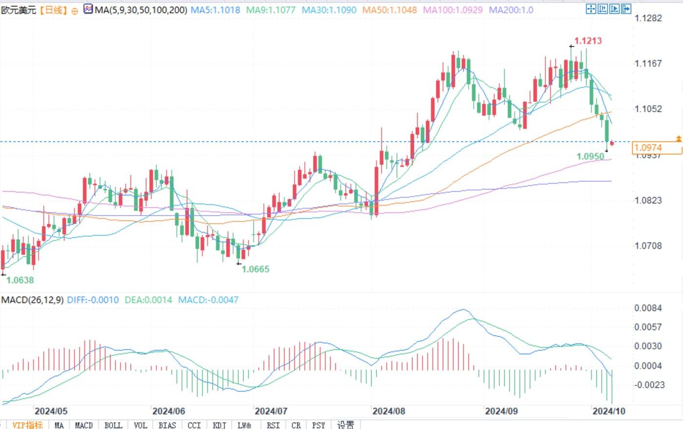 标题:欧元兑美元跌破1.10支撑,将进一步跌向1.09!