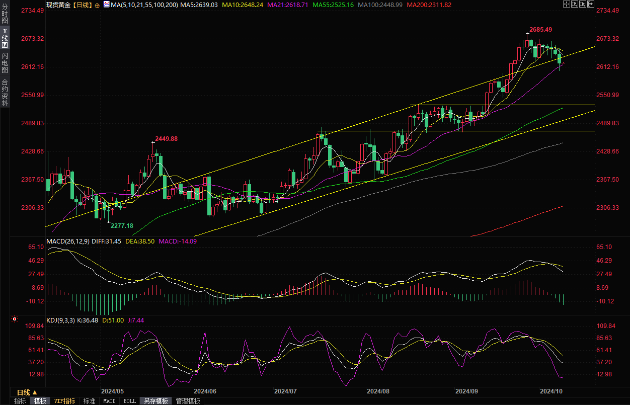 现货黄金现报2622.69美元/盎司。