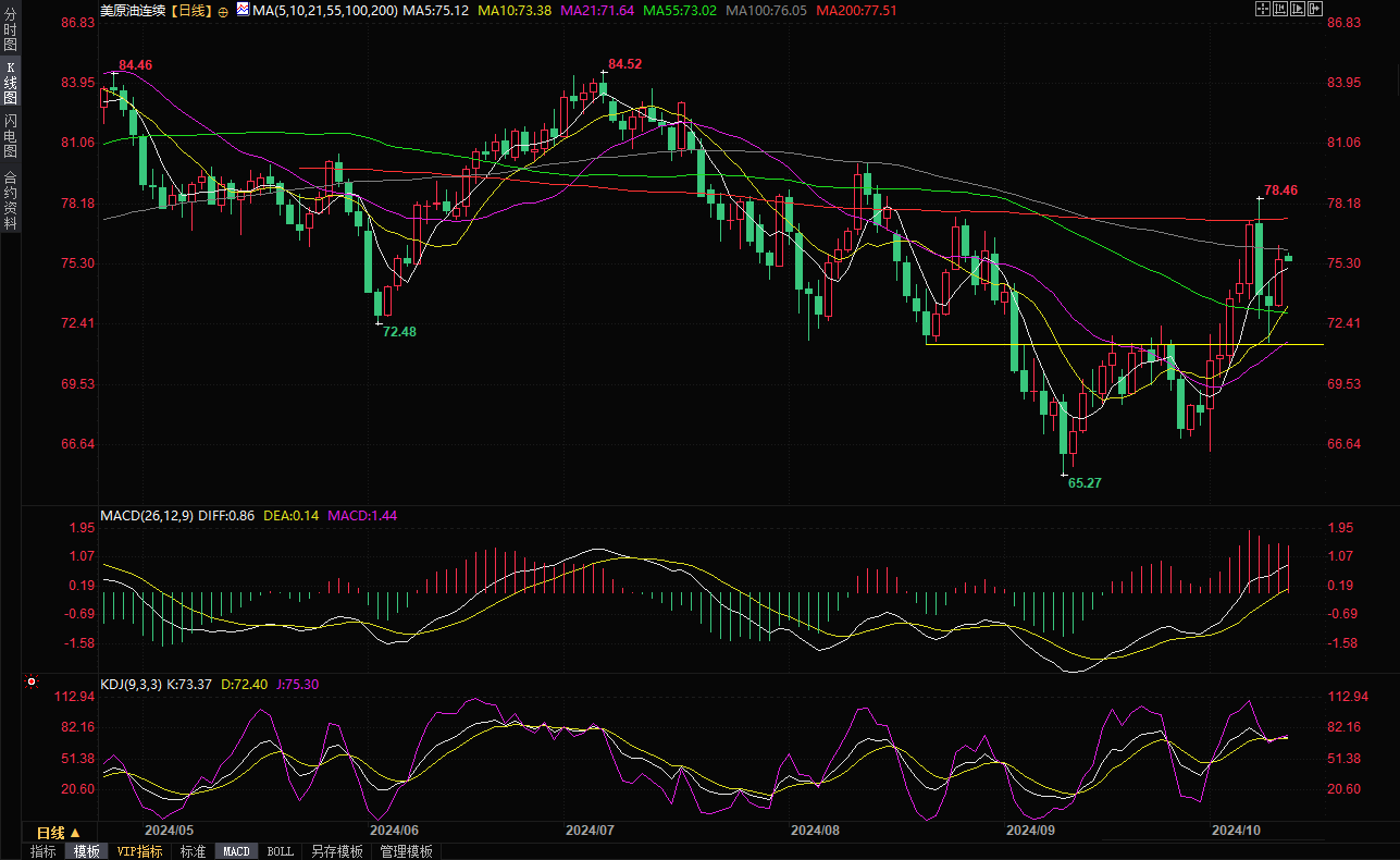 美原油目前交投于75.62美元/桶。油价周四大涨近4%,受助于飓风米尔顿横扫佛罗里达州之前美国燃料使用量大增、中东供应风险以及有迹象表明美国和中国的能源需求可能增长。