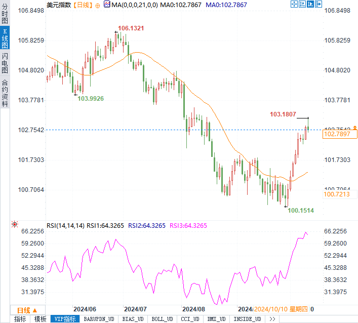 美元指数(DXY)在数据公布后的波动幅度接近50点,当前维持在102.95附近。