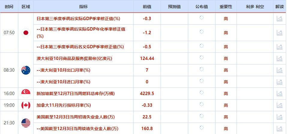 ①12月5日(周一)关键字:欧元区12月Sentix投资者信心指数,欧元区10月零售销售月率,欧元集团会议